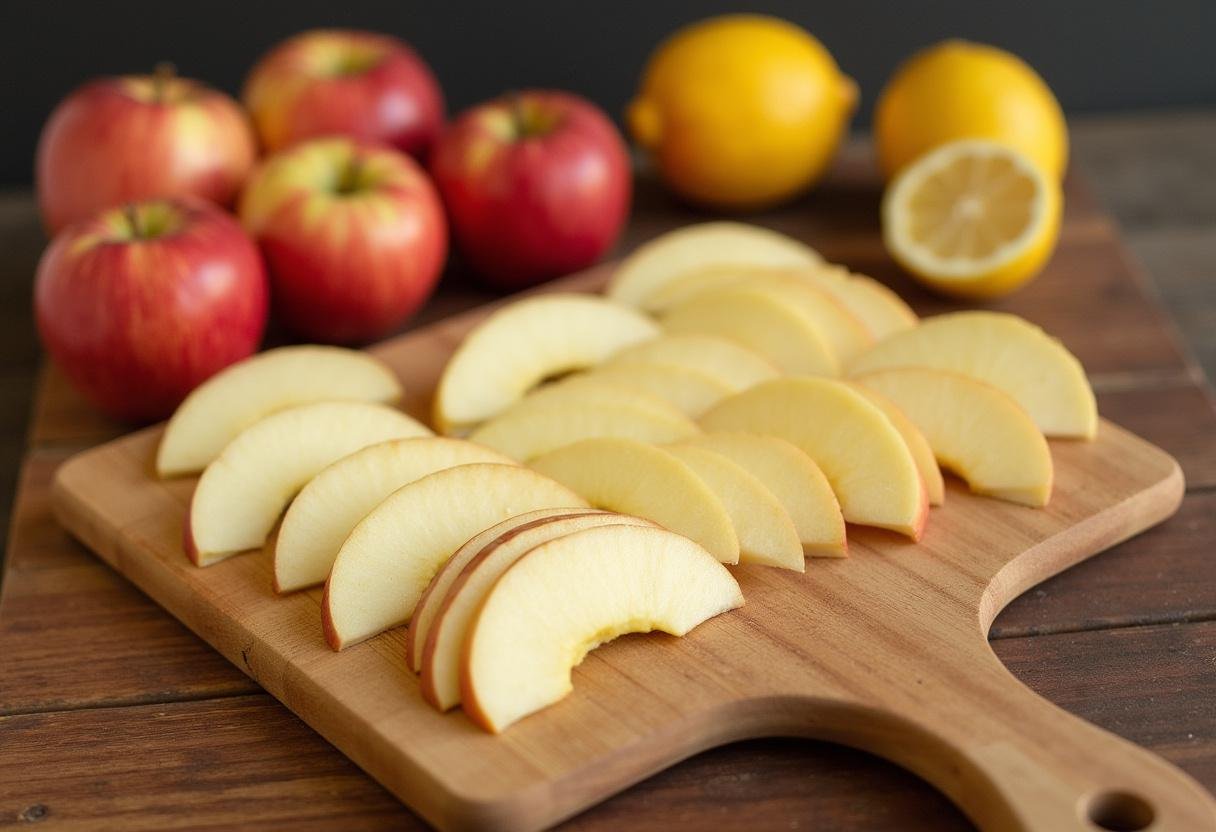 Schneiden Sie die Äpfel in dünne Scheiben. Je dünner die Scheiben, desto schneller garen die Äpfel durch. Vermischen Sie die Apfelscheiben anschließend mit Zucker, Zimt und Zitronensaft. Achten Sie darauf, dass die Äpfel gleichmäßig bedeckt sind, damit sie den vollen Geschmack entfalten können.
