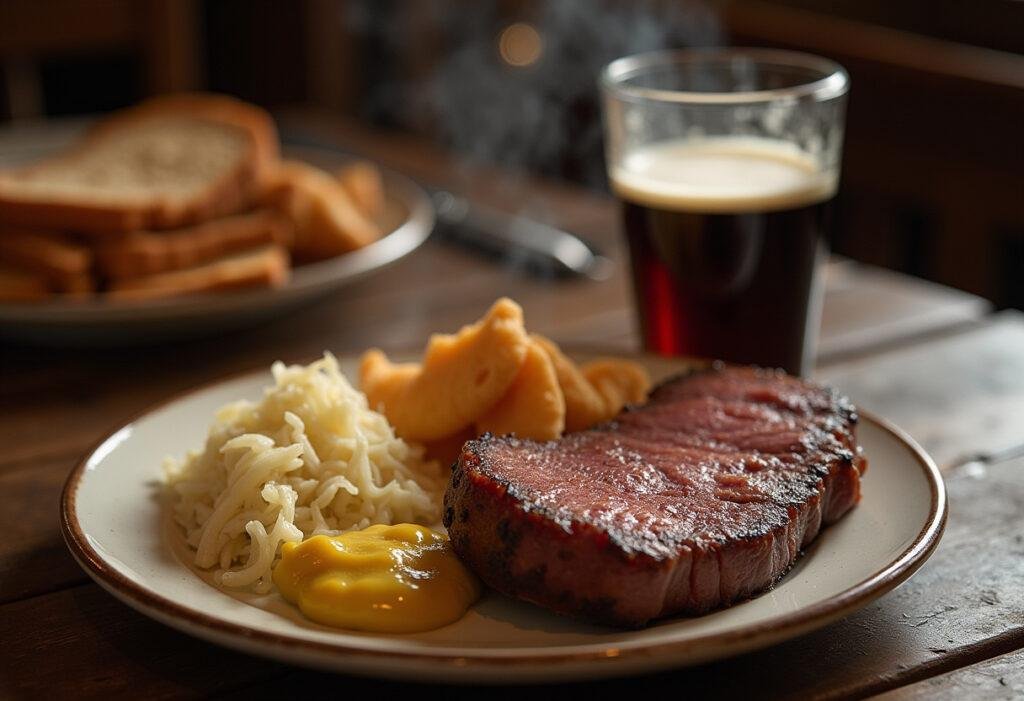 Genieße rauchiges Eisbein mit Sauerkraut & Senf – perfekte Harmonie für deinen Gaumen! 🍖🥬 #DeftigeGenüsse