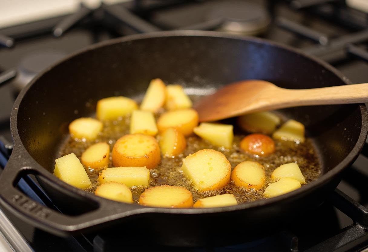 - Pfannenwahl: Eine gusseiserne Pfanne speichert die Hitze optimal und sorgt für gleichmäßiges Bräunen.